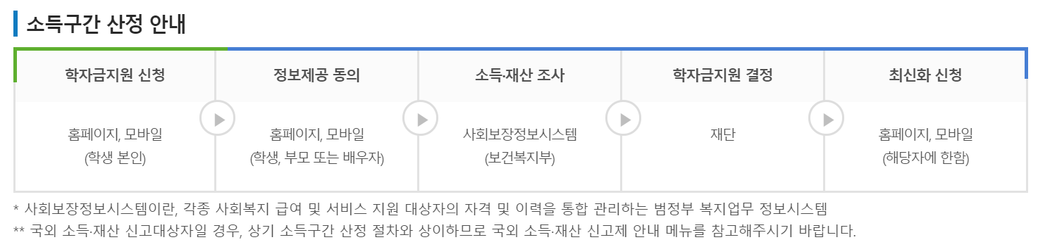 기본적으로 한 자금지원싡청, 정보제공 동의, 소득, 재산조사, 학자금 지원 결정, 최신화 신청 등으로 순서대로 진행이 됩니다. 그러면 본격적으로 어떻게 금액의 기준으로 나뉘는지도 알아보겠습니다.