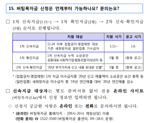 소상공인 버팀목자금 신청시간 및 그리고 문의는 가능한가?