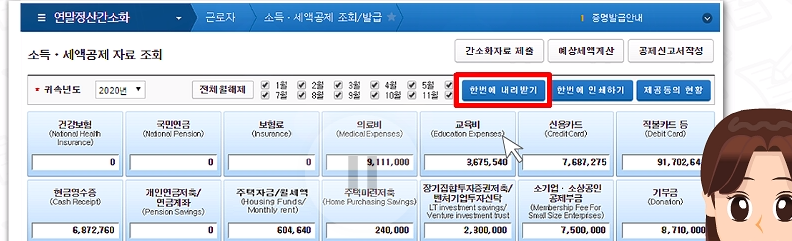아까 제가 말한 이러한 자료가 나오는데요. 현금영수증, 개연연금, 주택자금, 주택마련 저축, 기부금 등등 모두 제공하고 나면 마무리가 됩니다.