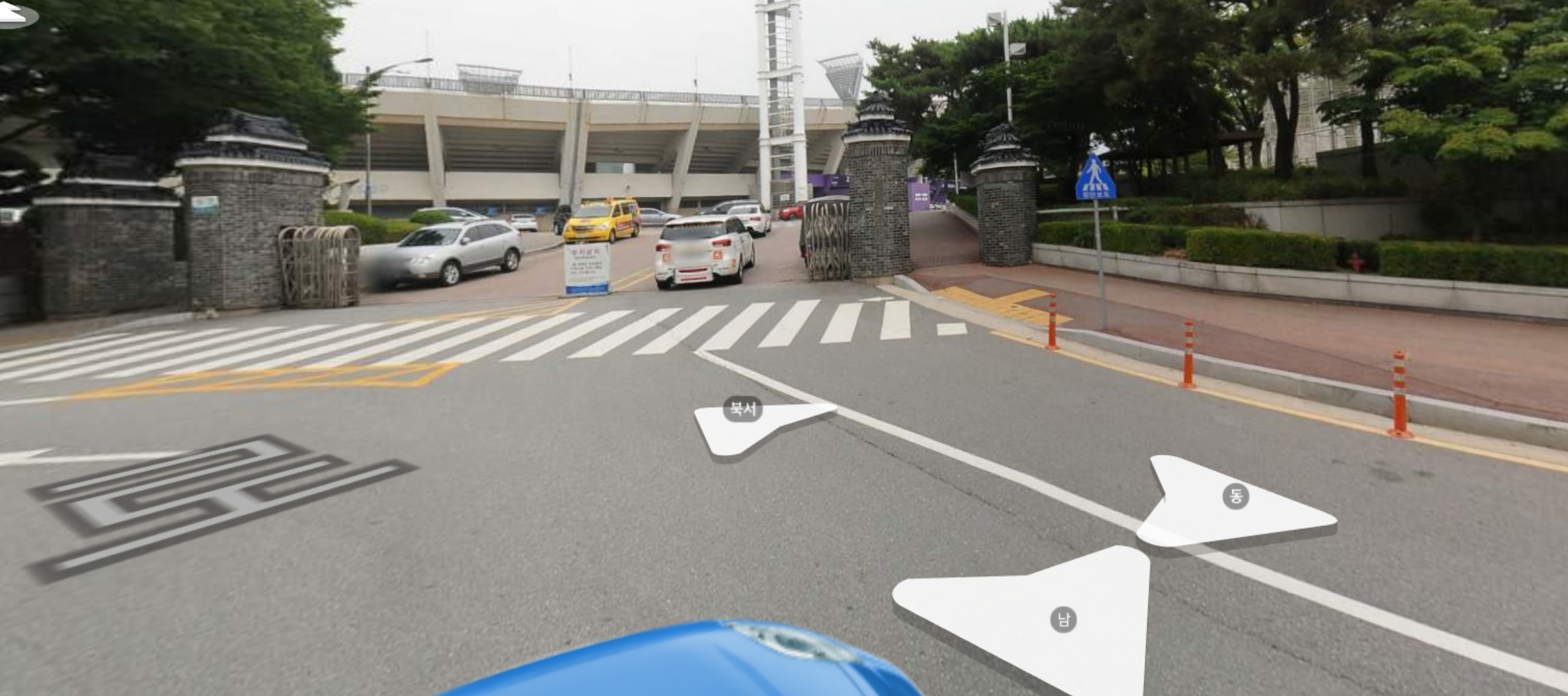 안양 종합운동장 입구를 클릭하게 되니깐요. 이렇게 정면의 입구가 보이네요. 여기서 뭐 클릭해서 여기저기 이동해 다닐 수가 있기 때문에 매우 좋은 기능이라고 보겠습니다.