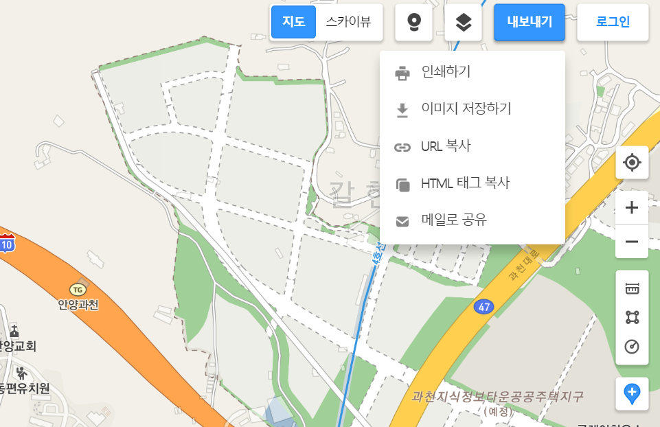 그리고 하나 더 있는 다음 지도 기능 중에서는 내가 이렇게 길 찾기 하고 검색해본 것을 바로 내보내기 할 수가 있는데요. 인쇄하기, 그리고 이미지 저장하기 또한 url복사부터 그리고 태그 복사까지 다양하게 공유를 하실 수가 있습니다.