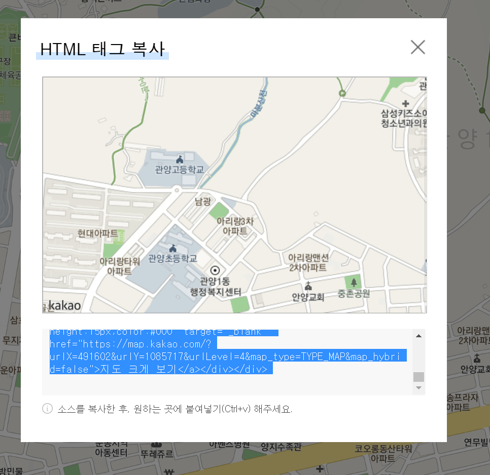 이렇게 보면 자신의 원하는 곳에 이다음 지도하면 태그 유알엘이 복사가 되면서 적용해서 넣으실 수가 있습니다. 매우 좋은 기능 중에 하나라고 보겠습니다. 블로그나 아니면 각종 사이트에 올릴 수가 있죠.